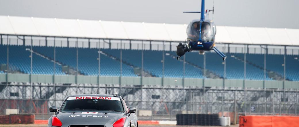 Zwycięzca GT Academy i kierowca NISMO, Jann Mardenborough, osiągnął GT-R’em prędkość 211 km/h, nawet nie siedząc w samochodzie! Sterował Nissanem za pomocą kontrolera PlayStation4 DualShock4 z... pokładu helikoptera! Na tę okoliczność załoga maszyny Robinson R44 Raven II otrzymała specjalne pozwolenie na lot na niskim pułapie.