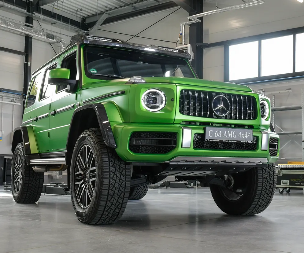 Goście spędzili wyjątkowy wieczór w towarzystwie kultowego 300 SEL (Rote Sau), z wzmocnionym silnikiem o mocy 428 KM, Mercedesem 190 (W201), zwanym również "Baby-Hammer" z 6-cylindrową jednostką o pojemności 3,2 litra, oraz legendarnym C124 "Hammer" z 5,5-litrowym motorem V8 – oba modele biją dziś rekordy cen na aukcjach kolekcjonerskich youngtimerów. Na gości czeka też pokazowa maszyna DTM przygotowana przez AMG oraz SLS E-Cell, czyli elektryczny Gullwing. Ten ostatni zamiast silnika V8, ma cztery jednostki elektryczne, po jednej na każde koło. W efekcie pierwszy elektryk od AMG, zaprezentowany równo 10 lat temu, potrzebuje 3,8 sekundy od 0 do 100 km/h i zaledwie 11 sekund, by rozpędzić się od 0 do 200 km/h. Wisienką na torcie była polska premiera nowego G 63 4x4, czyli hardkorowego i potwornie mocnego wydania kultowej G Klasy.
