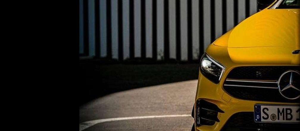 Kryjący się w cieniu Mercedes-AMG A35 został polakierowany żywym żółtym odcieniem, który prawdopodobnie jest lakierem Solar Yellow Yellow Metallic, znanym z palety barw AMG. Łatwo dostrzec zderzak przedni z dużymi wlotami powietrza, charakterystyczną atrapę sportowego grilla, zarys pokaźnego układu wydechowego oraz duże skrzydło nad klapą bagażnika, jak to się miało w przypadku poprzedniego A45.
