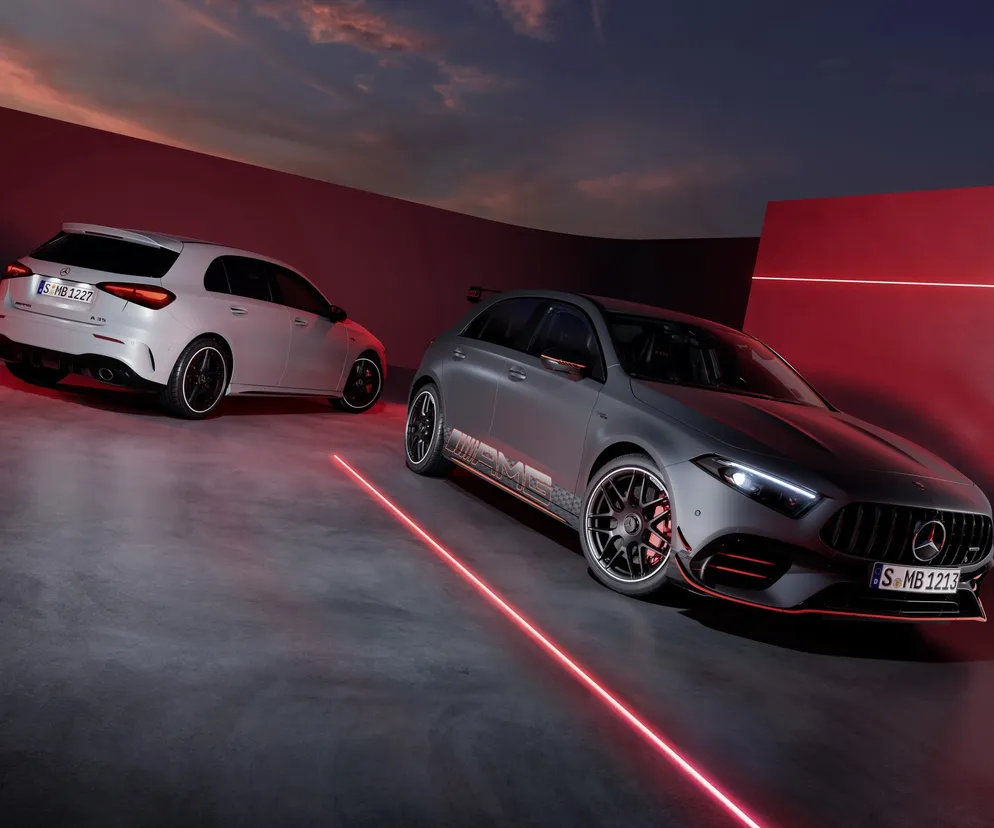 W "cywilnych" wersjach zmiany są subtelne, czego nie można powiedzieć o usportowionych wariantach spod znaku AMG. Egzemplarze podrasowane w Affalterbach będzie teraz jeszcze ciężej rozpoznać, bowiem słabsza odmiana A 35 (306 KM) otrzymała charakterystyczny dla najmocniejszych modeli AMG grill. Ponadto wyczynowe Klasy A, podobnie jak najnowszy Mercedes-AMG C 63 S E Performance, zamiast trójramiennej gwiazdy na czubku przedniego zderzaka, noszą teraz herb AMG. W kabinie sportowych kompaktów zawitała 5-ramienna kierownica z pilotami do sterowania ustawieniami napędu, nowe szaty graficzne, a także nowe opcje wykończenia wnętrza.