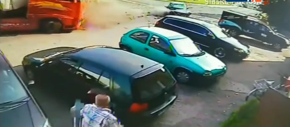 W dniu 1 sierpnia w Połomi doszło do groźnie wyglądającego zdarzenia. 31-letni kierowca osobowego auta zignorował znak STOP i wjechał rozpędzony na skrzyżowanie. Pech chciał, że drogą jechał TIR, który okazał się barierą nie do pokonania. Osobowe auto wbiło się w bok ciągnika siodłowego, a całe zdarzenie zarejestrowała kamera monitoringu.