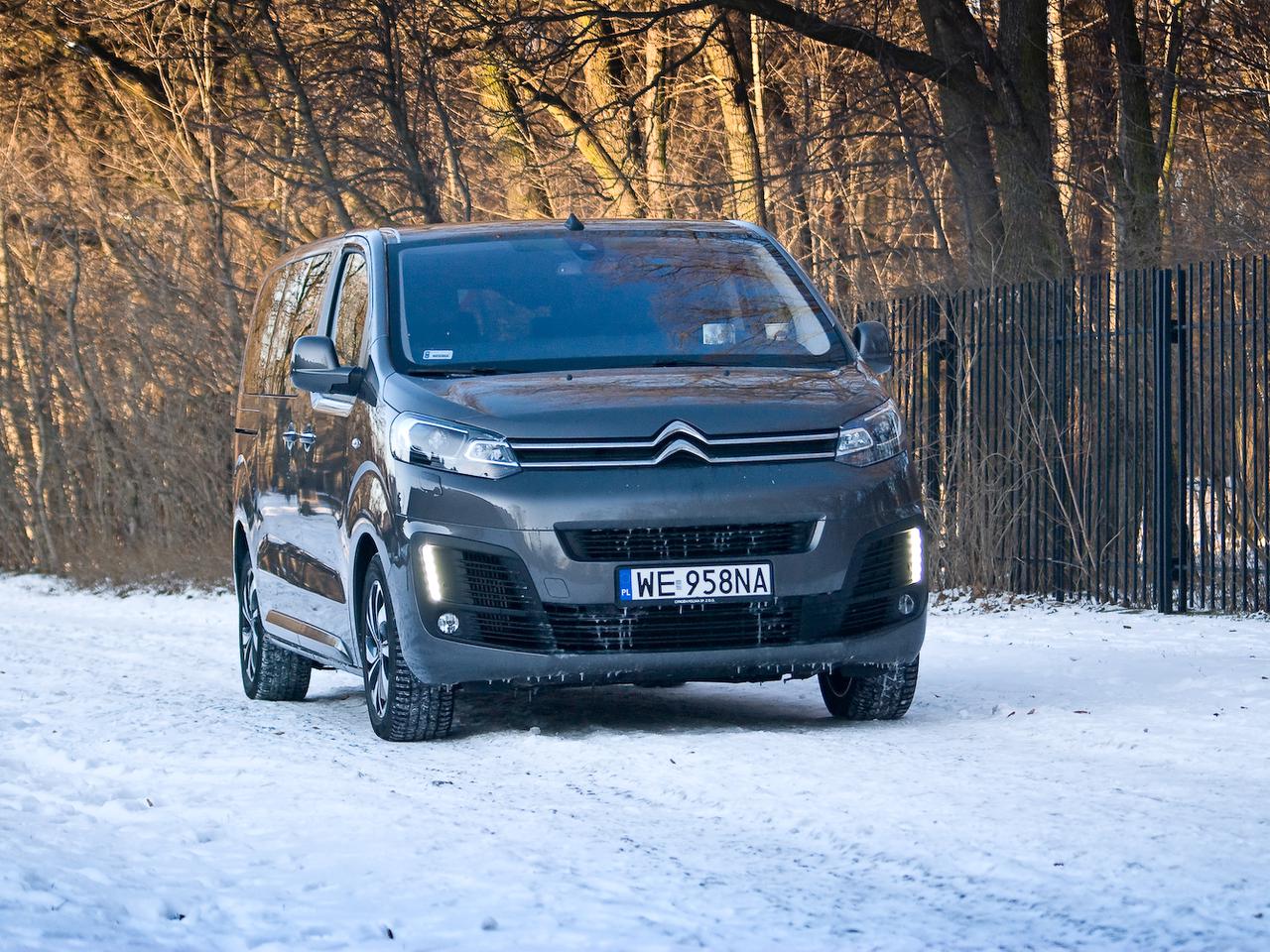 Citroen Spacetourer oferowany jest w trzech wersjach długości nadwozia. Testowany egzemplarz to "M", czyli pozycjonowany w środku gamy, lecz oferujący już dłuższy rozstaw osi na poziomie 3275 milimetrów. To więcej niż krótki, "kompaktowy" Volkswagen Caravelle, co znacząco wpływa na manewrowanie, o czym później. Warto też zauważyć, że Citroen wprowadził do swojej oferty wersję Businnes, przeznaczoną dla wymagających klientów biznesowych. Pakiet "Shine" – w tym egzemplarzu - dalej przystosowany jest raczej pod dużą rodzinę lub wyszukany transport zarobkowy.