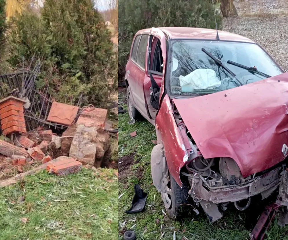 Kompletnie pijany kierowca wbił się w ogrodzenie! Z auta niewiele zostało
