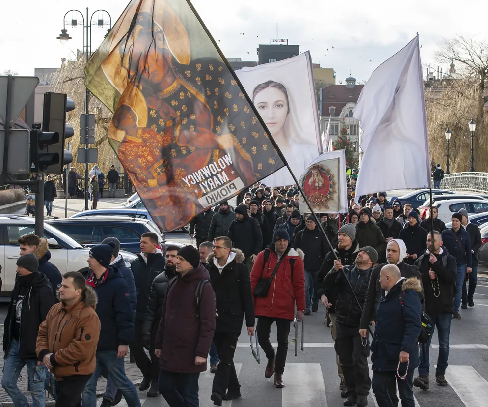 Mężczyźni z różańcem zalali Bydgoszcz. Wojownicy Maryi dali świadectwo wiary i oddali się Matce Boskiej
