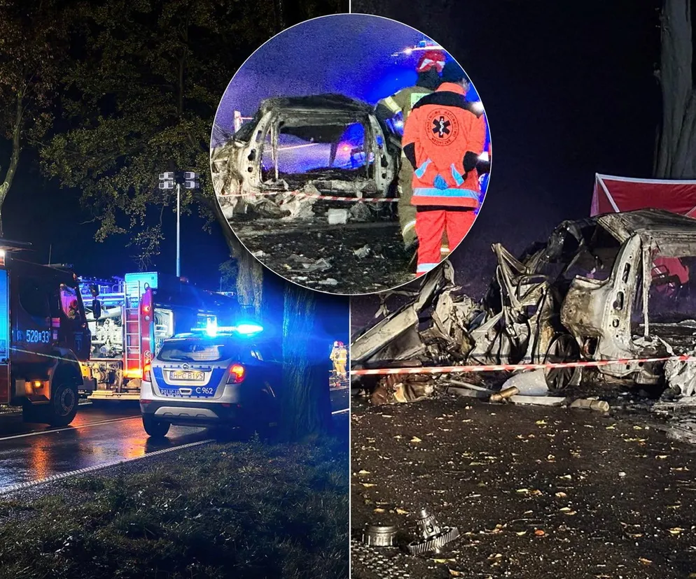 Osobówka uderzyła w drzewo i stanęła w płomieniach! Kierowca spłonął żywcem