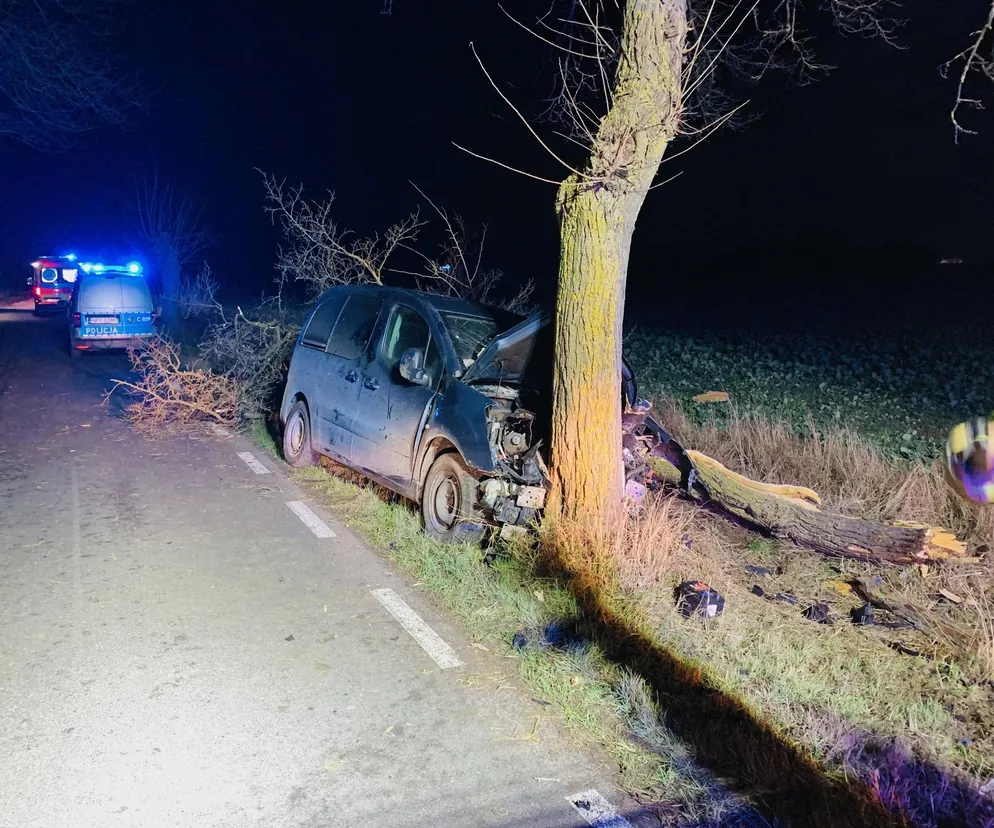Do zdarzenia doszło o godzinie 19:30. - Po przybyciu na miejsce zdarzenia zastano rozbity samochód osobowy na poboczu drogi, po wcześniejszym uderzeniu w 2 drzewa (pierwsze z nich zostało złamane). Wewnątrz pojazdu znajdował się mężczyzna z urazem głowy, przytomny, kontaktowy. Równocześnie z pierwszym zastępem straży pożarnej na miejsce przybyło pogotowie ratunkowe - wyjaśnia rzecznik straży pożarnej w Mogilnie.