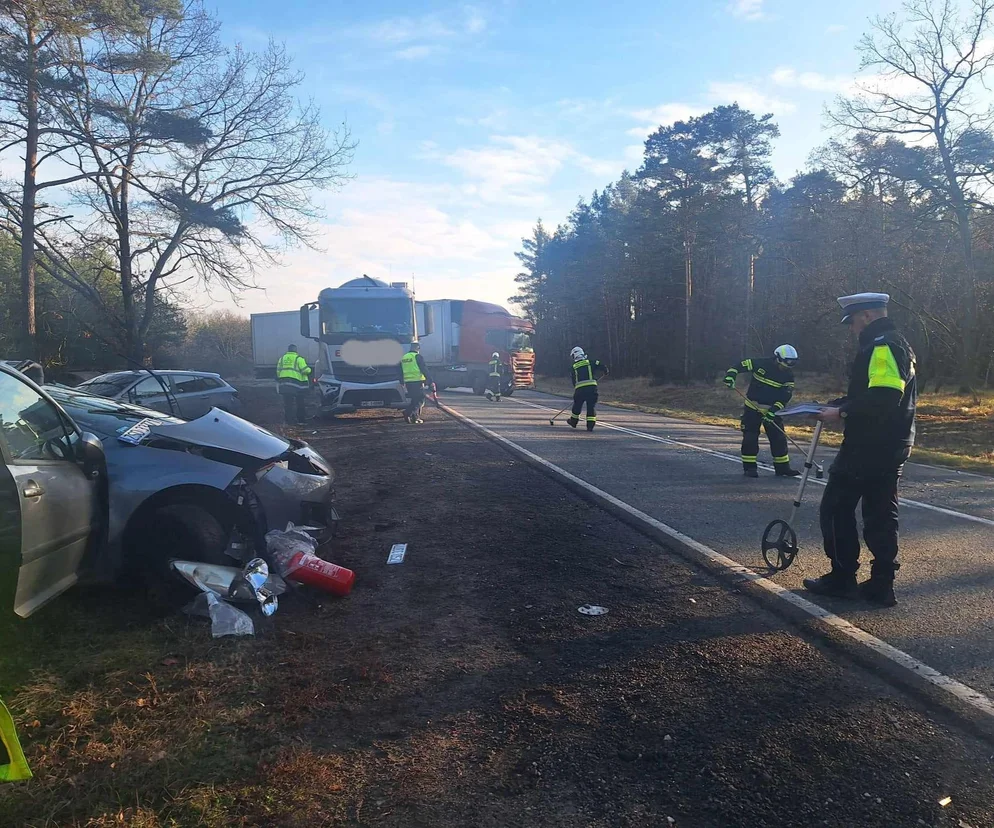 - Doszło do zderzenie dwóch samochodów osobowych z dwoma samochodami ciężarowymi. Jedna osoba poszkodowana badana przez ZRM. Pozostałe osoby nie odniosły obrażeń. Droga krajowa nr 10 jest zablokowana. Na miejscu 3 zastępy JOP - wyjaśniają strażacy.