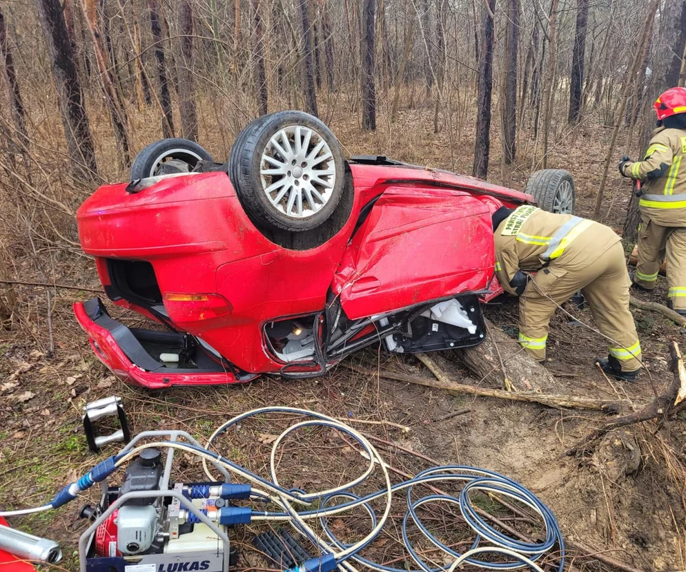 To była wyjątkowo skomplikowana interwencja, bo musieliśmy użyć dwóch zestawów narzędzi hydraulicznych. Pojazd leżał na dachu i był tak naprawdę zablokowany z dwóch stron, bo nie dość, że przygniotło go drzewo, to jeszcze przebiło karoserię, blokując dostęp do drzwi. Mężczyzna był całkowicie zakleszczony - informuje mł. bryg. mgr inż. Andrzej Włodarczyk, rzecznik Komendy Powiatowej Państwowej Straży Pożarnej w Sandomierzu, dodając, że na miejscu interweniowało 6 zastępów strażaków.