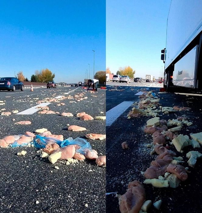 Karambol na A4 pod Krakowem. Autostrada zasypana mrożonym mięsem
