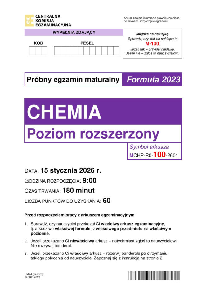 Matura próbna z chemii rozszerzona 2026. ARKUSZE CKE [15.01.2026]