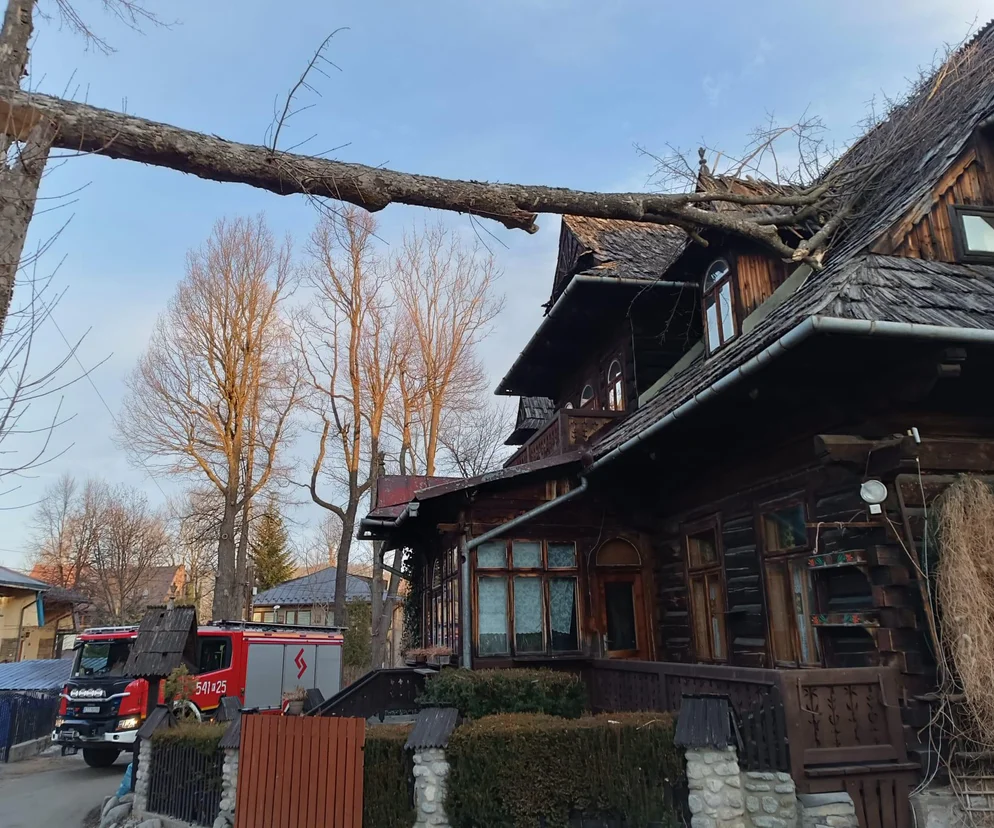 Konar odłamany od reszty drzewa z powodu silnego wiatru spadł na dom znajdujący się przy ul. Kraszewskiego w Zakopanem. Na szczęście w wyniku zdarzenia nikt nie ucierpiał.