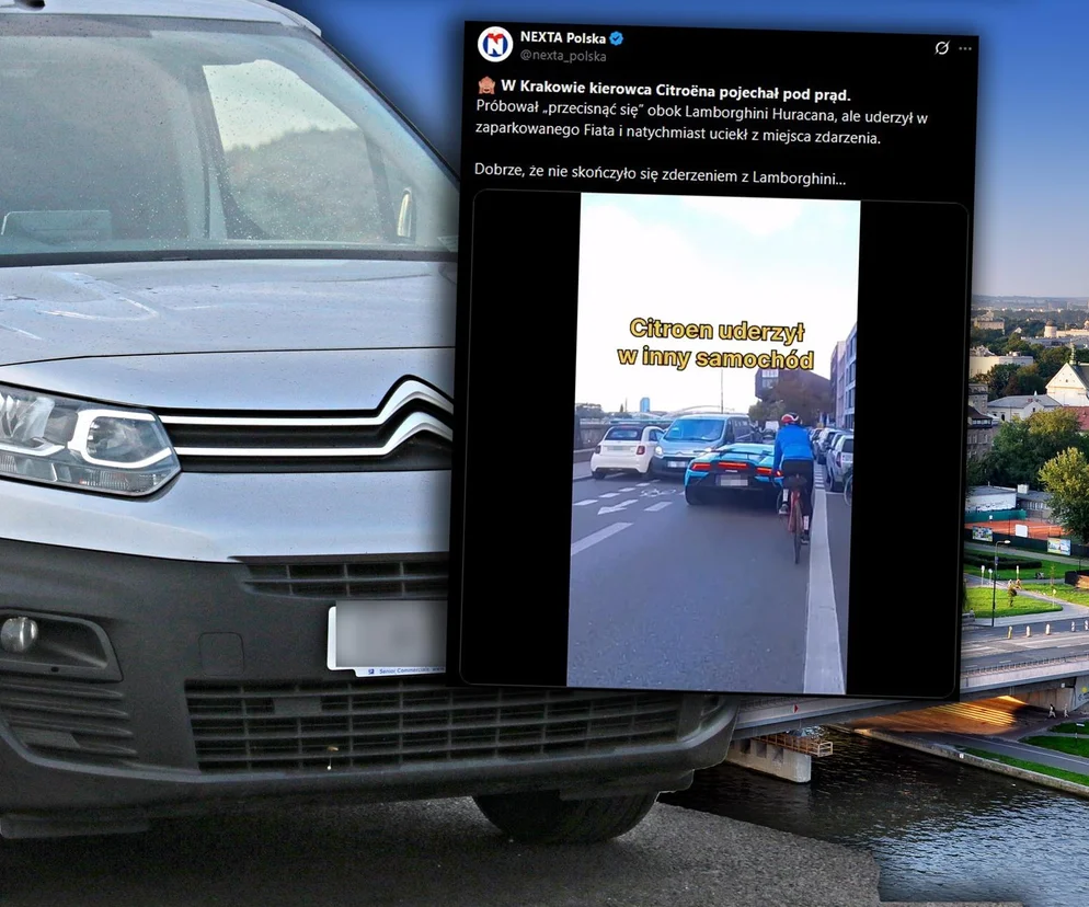 Redakcja "Super Expressu" czeka na informację z policji dotyczącą zdarzenia drogowego na ul. Nadwiślańskiej w Krakowie, w którym brali udział kierowcy citroena i lamborghini huracan. W niedzielę, 5 października, wideo poświęcone ww. tematowi opublikowała na swoim profilu na platformie X Nexta Polska. Widzimy na nim, jak kierujący dostawczym citroenem jedzie pod prąd, ale nie próbuje przepuścić lamborghini, tylko dosłownie przeciska się między nim a zaparkowanym przy ulicy fiatem, uderzając lekko w drugi z pojazdów.