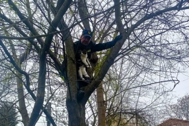 Kot wszedł na drzewo, ale nie potrafił zejść. Pomogli mu strażnicy