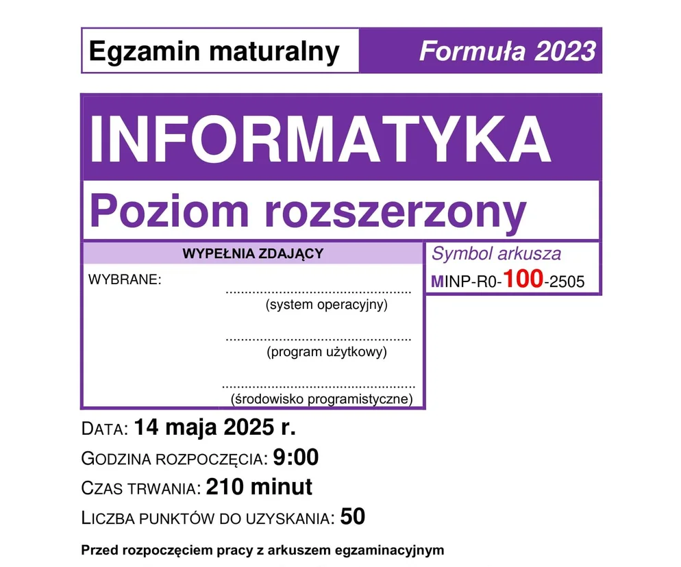 Matura 2025. INFORMATYKA poziom rozszerzony: ODPOWIEDZI sugerowane i ARKUSZ CKE nowa formuła 2023