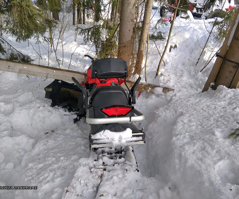 Kościelisko. Młoda kobieta wjechała w drzewo skuterem śnieżnym. Trafiła do szpitala
