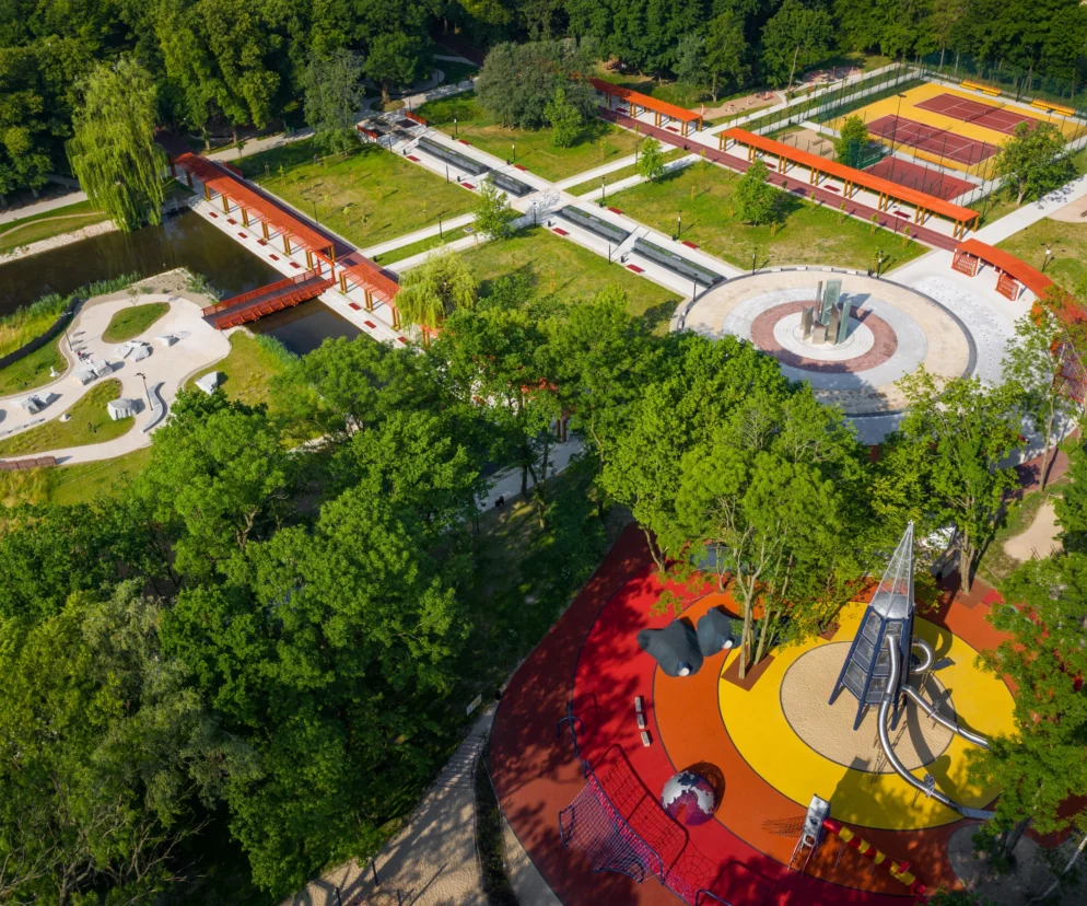 Park o powierzchni 7 hektarów zyskał także bogatą infrastrukturę sportową i rekreacyjną. Środki europejskie pozwoliły na budowę nowych kortów tenisowych, boiska treningowego, trasy dla rowerzystów i rolkarzy, nowoczesnej siłowni zewnętrznej oraz dwóch placów zabaw. To przestrzeń, która łączy pokolenia. Seniorzy, młodzi rodzice z wózkami, dzieci, młodzież i osoby aktywne fizycznie – wszyscy mogą tu znaleźć coś dla siebie.