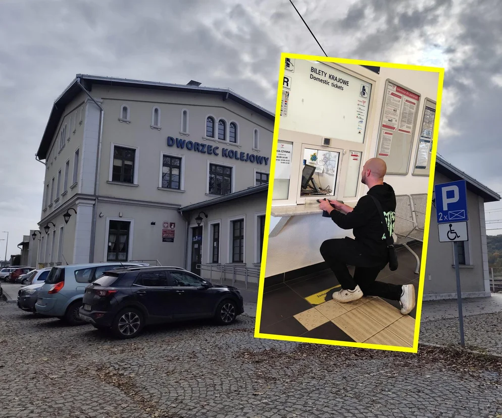 Przed remontem były trzy kasy kolejowe, w tym jedna, przeznaczona dla osób niepełnosprawnych z okienkiem usytuowanym na wysokości wygodnej dla człowieka siedzącego na wózku inwalidzkim. Po remoncie dwa okienka zamurowano, a zostawiono jedno, właśnie to, do którego trzeba uklęknąć, by kupić bilet na pociąg.