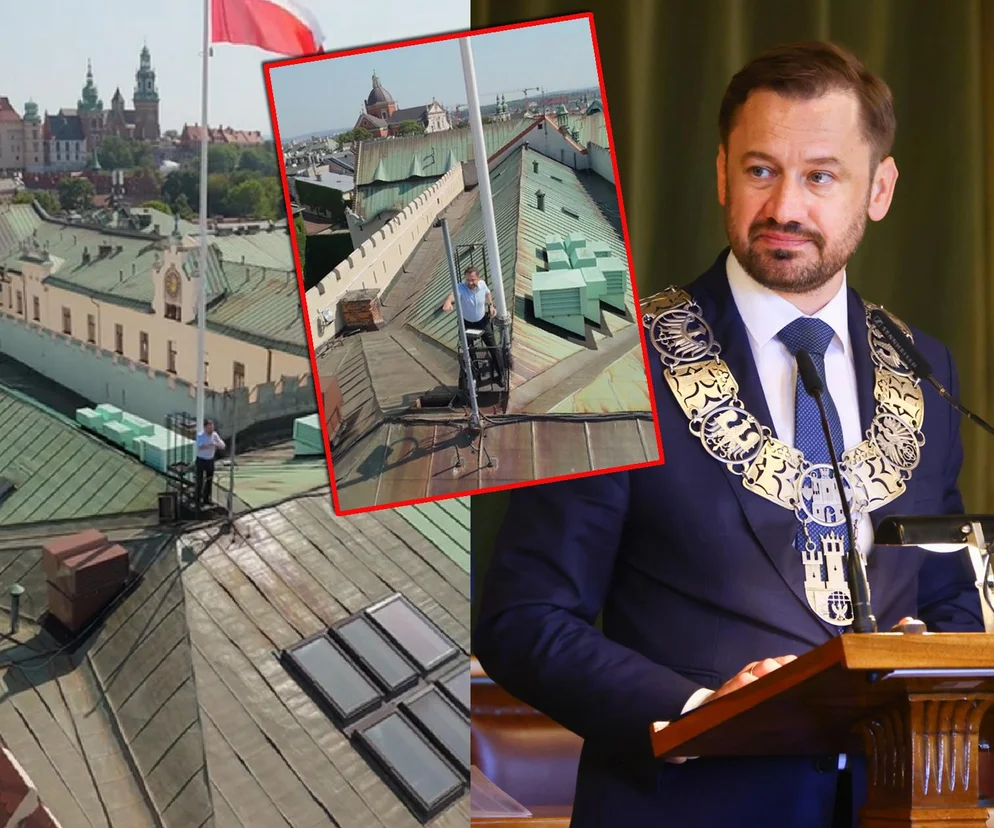 - Tak samo, gdy wiesza się tam flagę - nikt nie chodzi w uprzęży, czy w kasku. Dach ma metrowy, czy nawet półtorametrowy murek, więc spaść się stamtąd nie da - podkreślił prezydent Krakowa Aleksander Miszalski.