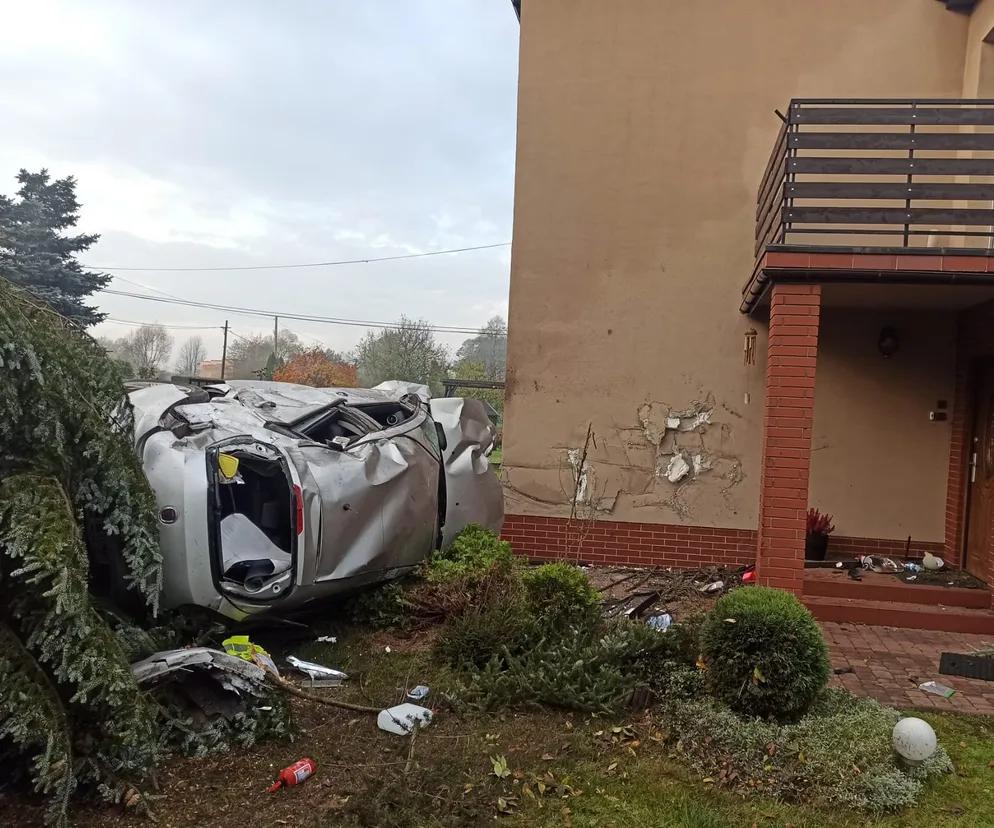 26-letni kierowca fiata wypadł z jezdni i uderzył w dom. Trafił do szpitala