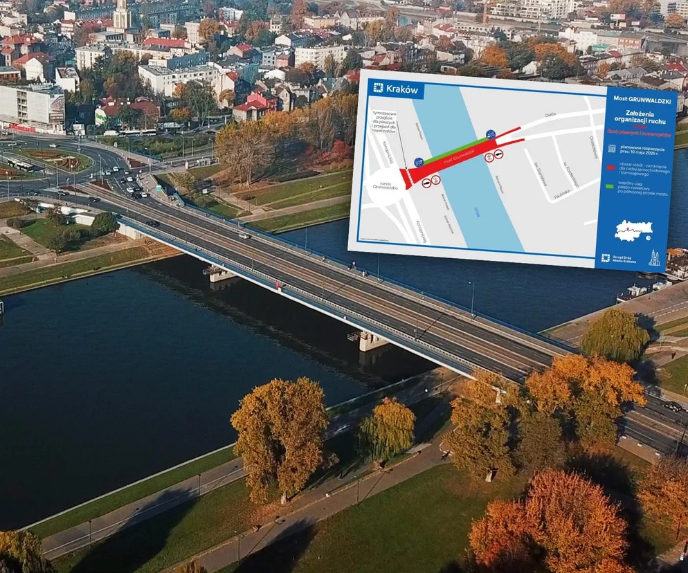 Gruntowny remont mostu Grunwaldzkiego będzie jedną z większych inwestycji drogowych w Krakowie w tym roku. Jest on konieczny, bo ekspertyza przeprowadzona przez Politechnikę Krakowską wykazała, iż most może bezpiecznie funkcjonować maksymalnie do 2038 roku. Docelowo planuje się jego rozbiórkę i budowę nowej przeprawy, która połączy Stare Miasto i Dębniki. Aby jednak obecna konstrukcja mogła posłużyć mieszkańcom jeszcze przez kilkanaście lat, konieczne jest przeprowadzenie pilnych prac remontowych.