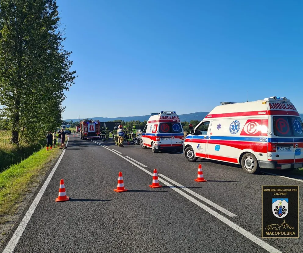 Białka Tatrzańska. Zderzenie trzech osobówek na prostej drodze. Są poszkodowani