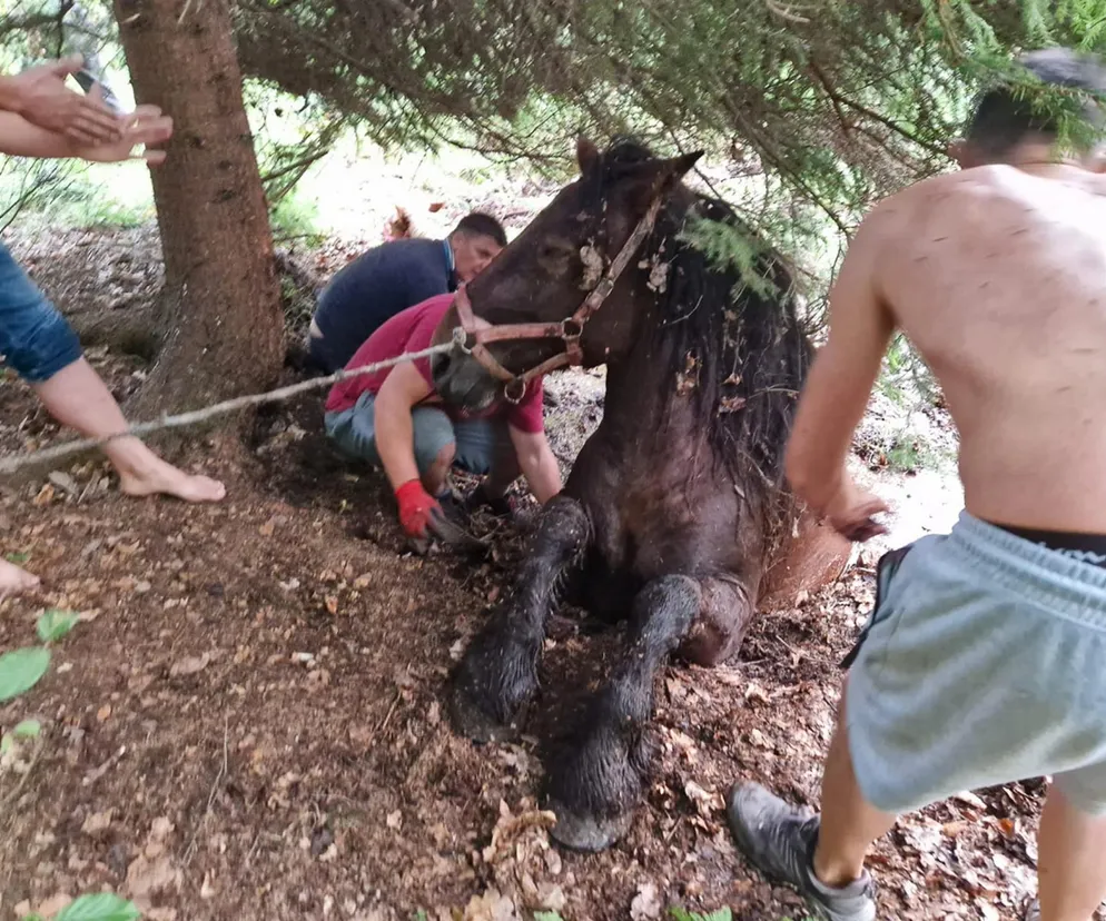 Konie wpadły do bagna. Wspólna akcja strażaków i mieszkańców