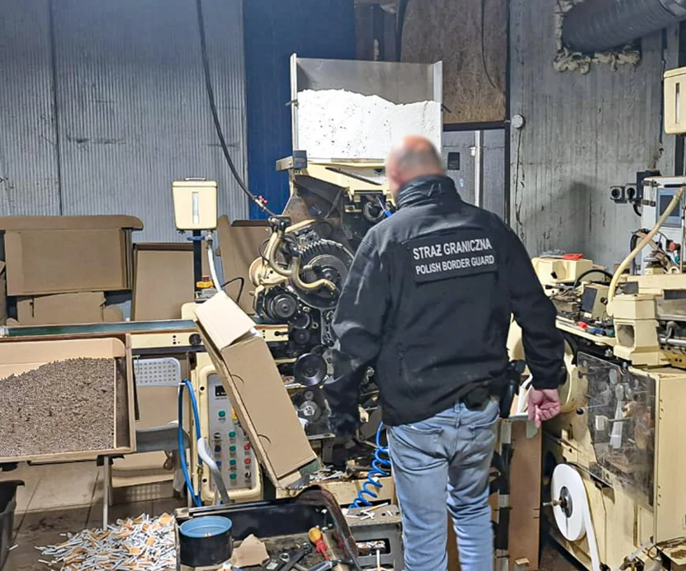 Funkcjonariusze zabezpieczyli kompletną linię technologiczną do produkcji papierosów oraz komponenty w postaci tytoniu, filtrów, bibuły oraz owijek do filtrów znanych marek. Zdeponowano wózki paletowe, agregat prądotwórczy, kompresory powietrza, a także urządzenie do zagłuszania sygnału GSM.