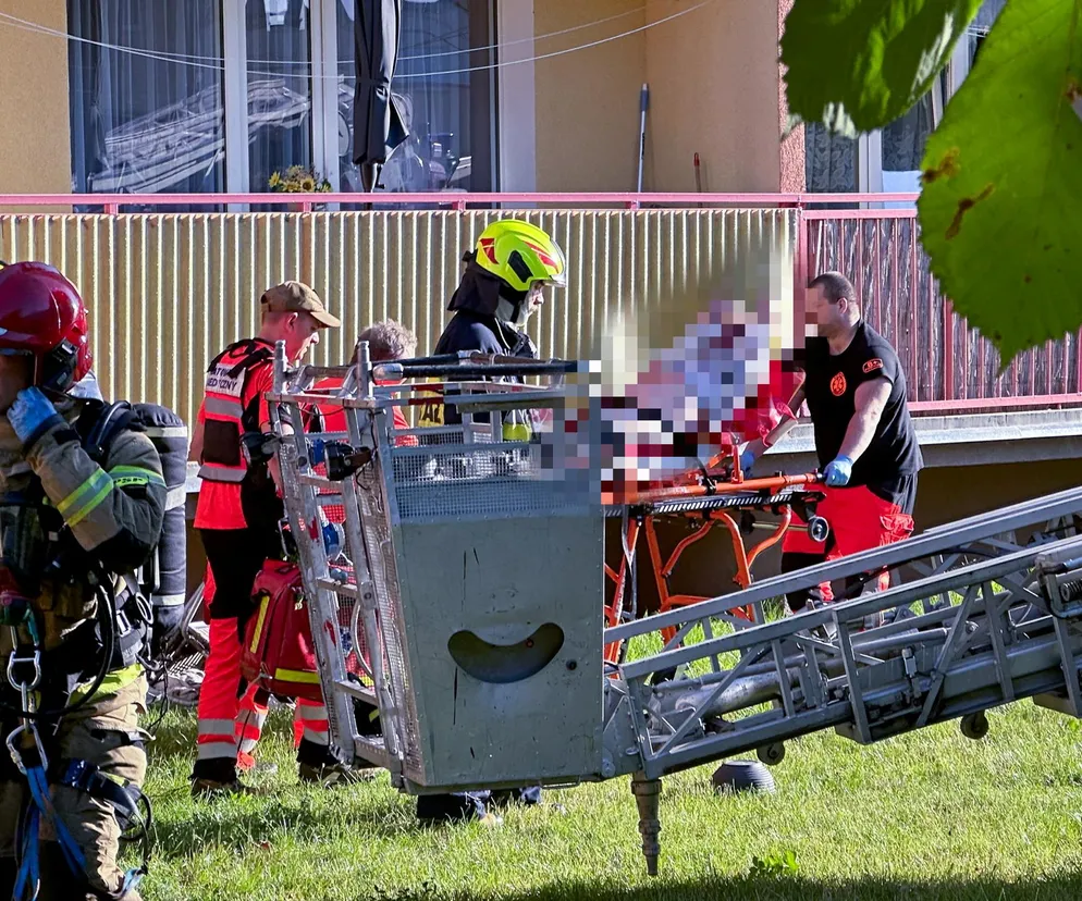 Uratowany mężczyzna w poważnym stanie trafił do szpitala w Ostródzie. Ma poparzenia dróg oddechowych. Mężczyzna nawdychał się toksycznych substancji, które są bardzo niebezpieczne. To wynik wdychania dymu ze spalanego plastiku z okien PCV, który wydziela cyjanowodór.