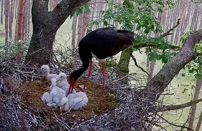Bocian czarny wyrzucił z gniazda dwa pisklaki