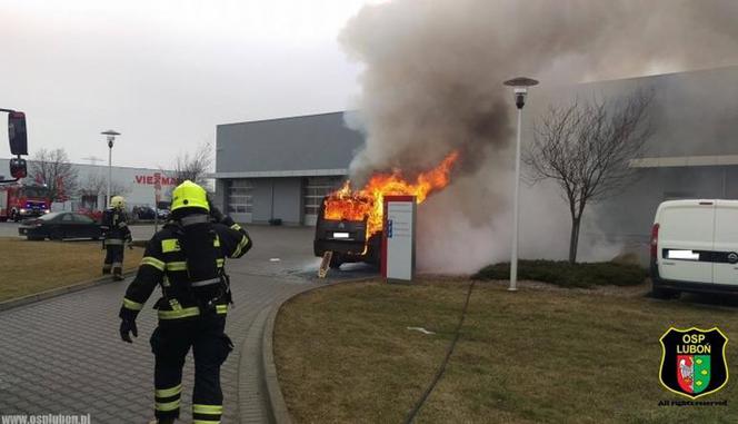 Pożar samochodu na parkingu przy ul. Poznańskiej w Komornik