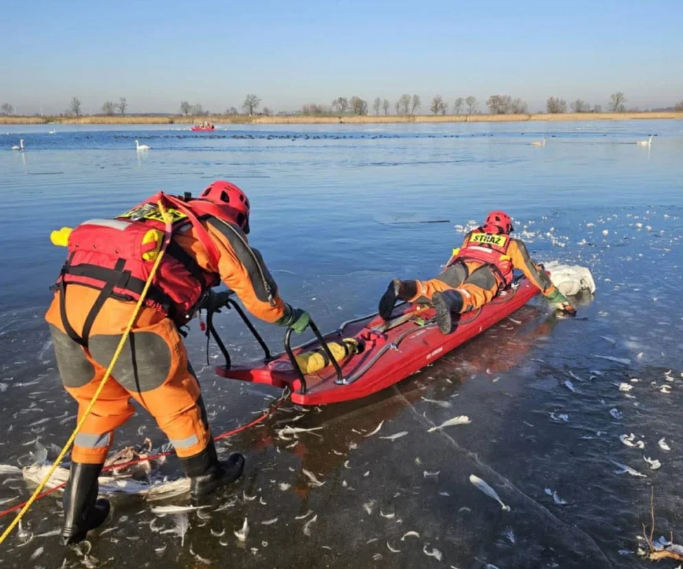 Martwe dryfujące ptaki zauważono na jeziorze w Jutrosinie w poniedziałek, 19 stycznia, przed południem. Do pracy od razu ruszyli zawodowi strażacy z Rawicza oraz ochotnicy z Jutrosina oraz Rogożewa. Akcja była trudna, bo część ptaków była przymarznięta do lodu. Wstrząsający widok chwytał za serce, niektóre ptaki były nawet objedzone przez drapieżniki. Strażacy musieli wykorzystać łódź ratowniczą i sanie lodowe.