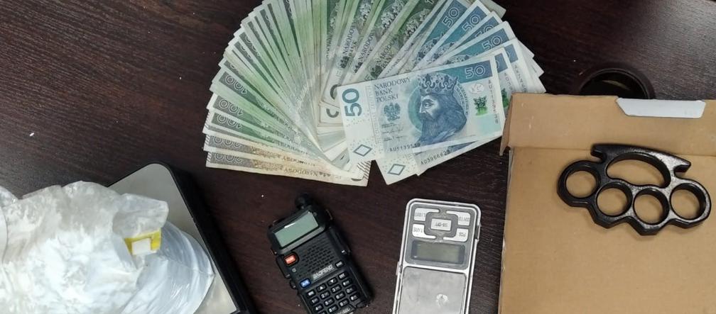 Worek z narkotykami ukryty był w... lodówce, co trzeba uznać za nietypową skrytkę. Dodatkowo kryminalni ujawnili i zabezpieczyli wagi elektroniczne, radiotelefon, pieniądze, kastet oraz przedmiot przypominający pistolet.
