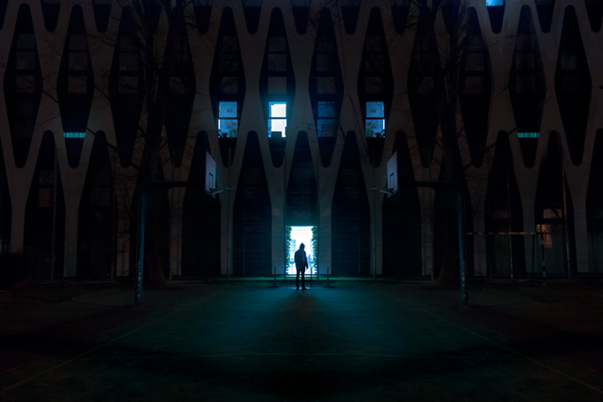 Centrum Zaawansowanych Technologii Nobel Tower znajduje się przy ul. Dąbrowskiego. Charakterystyczna elewacja sprawia, że budynek trudno pomylić z jakimkolwiek innym. Właśnie elewacja stanowi tło kolejnej mrocznej fotografii przysłanej nam przez Patryka Szymkowiaka.