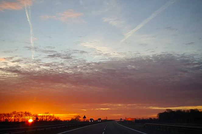 Minusem wschodów słońca jest to, że żeby go zobaczyć, trzeba wstać bardzo wcześnie. Zdajemy sobie sprawę z tego, że nie każdemu się chce i właśnie dla tych z Was mamy zdjęcie wschodu słońca zrobioną na autostradzie A2. Uprzedzamy Wasze pytania - zdjęcie zrobił pasażer, a kierowca skupiał się na jeździe. Widok jest naprawdę piękny, zgadzacie się? :)
