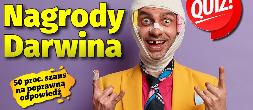 Nagrody Darwina to przyznawane co roku (w wyniku głosowania w internecie) "nagrody", za wyjątkową głupotę, której efektem była śmierć kandydata (lub ewentualnie pozbawienie się zdolności płodzenia potomstwa). Przyznawane są od 1994 roku. Jak argumentowali twórcy, chcą oni upamiętnić osoby, "które przyczyniły się do przetrwania naszego gatunku w długiej skali czasowej, eliminując swoje geny z puli genów ludzkości w nadzwyczaj idiotyczny sposób”. W naszym piątkowym teście przypomnimy niektórych z laureatów. Twoim zadaniem jest ocenić, które ze wskazanych miały naprawdę miejsce, a które sobie wymyśliliśmy. Choć macie 50 proc. szans na poprawną odpowiedź, o komplet punktów może być bardzo ciężko!