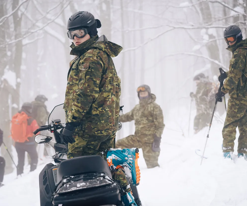 Jak zaznacza Piotr Zakielarz z BIOSG, narty skiturowe oraz skutery śnieżne są w warunkach zimowych często podstawowym sprzętem służącym do patrolowania granicy. To niezawodny sprzęt w sytuacjach, kiedy funkcjonariusze szybko muszą dotrzeć w trudno dostępne punkty na granicy państw w służbie mundurowi często stosują transport na nartach za skuterem śnieżnym. Ta technika pozwala na szybkie przemieszczenie się patrolu w określone miejsce, który kontynuowany jest już na samych nartach. To rozwiązanie wymaga doskonałych umiejętności zarówno od narciarza, jak i od kierującego skuterem. Dynamiczne przejazdy w ekstremalnych zimowych warunkach są nie lada wyzwaniem dla narciarza.