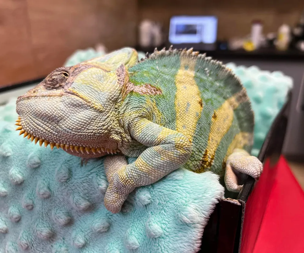 Kajtek w najbliższych dniach ma wyruszyć w długą drogę z Przemyśla do Warszawy na szczegółowe badania i diagnozę. Teraz weterynarze muszą zrobić wszystko, by taki transport mógł się odbyć i by kameleon zniósł go dobrze.