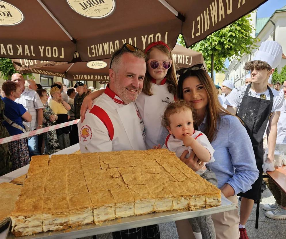 - Jest to przede wszystkim praca na dwa zakłady, jeden na ul. Miodowej w Rzeszowie, drugi u mojego brata Radosława Raka na Zaczerniu - mówi cukiernik i dodaje, że do tego nietypowego zadania potrzebne są każde ręce chętne pracy i kto może, pomaga. Tym samym ciężko powiedzieć, ile dokładnie osób pracuje nad tą kremówką.
