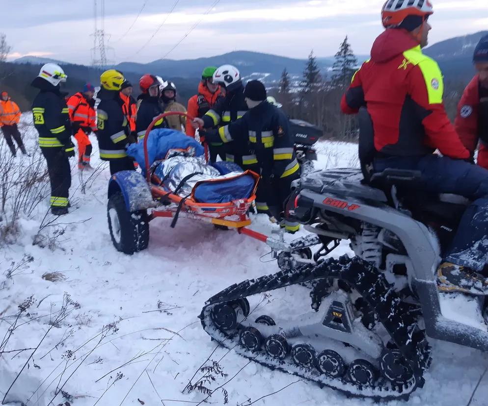 - W dniu 20.12.2022 r. o godz. 14:35 zostaliśmy zadysponowani do poszukiwań oraz pomocy w dotarciu do postrzelonego podczas polowania mężczyzny w miejscowości Zawadka Rymanowska. Nasze działania polegały na odnalezieniu osoby poszkodowanej, dowiezieniu do poszkodowanego Zespołu Ratownictwa Medycznego oraz śmigłowca LPR, pomocy przy udzielaniu pierwszej pomocy, przygotowaniu do transportu poszkodowanego na naszej przyczepie ratowniczej, z którą przekazaliśmy pacjenta do ewakuacji do śmigłowca załodze GOPR Bieszczady. Do działań wyjechał samochód SLBus Renault Trafic, skuter śnieżny Polaris Widertrak 750 oraz quad polaris sportsman 500 z przyczepką ratowniczą. Jednostki biorące udział w akcji: JRG Krosno, OSP Dukla, OSP Tylawa , OSP Równe, OSP Iwla, Samodzielne Publiczne Pogotowie Ratunkowe w Krośnie, Lotnicze Pogotowie Ratunkowe Ratownik 10, GOPR Bieszczady - relacjonowali strażacy.