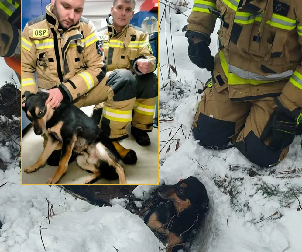 Piesek uwięziony w przepuście drogowym. Uratowali go strażacy