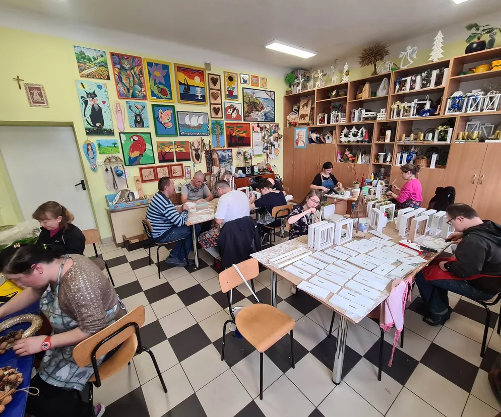Zaprzyjaźniona firma wycina dla nich z drewna wcześniej zaprojektowane przez nich figury, potem wspólnie je zdobią. Każdy świąteczny stroik jest inny, niepowtarzalny i na pewno posłuży w domu przez wiele lat. Podopieczni Caritasu przygotowują swoje ozdoby na jarmark bożonarodzeniowy, który odbędzie się 18 grudnia w Rudniku nad Sanem. Świąteczną imprezę z kiermaszem tych cudowności organizuje Urząd Gminy wraz z Centrum Wikliniarstwa, z którego słynie ten teren.
