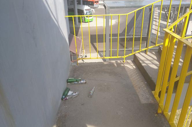 W poniedziałek jedna z naszych redaktorek odbyła taki "wątpliwej jakości" spacer. Jakież było zdziwienie, kiedy okazało się, że kładka jest usłana butelkami po alkoholu i rozbitym szkłem. Czyżby podróżni opróżniali tu trunki zakupione w pobliskim sklepie spożywczym? Kto stoi za tym bałaganem? Młodzież? Dorośli? Na to pytanie odpowiedzi nie znamy. Jedno jest pewne - szkło nie tylko jest nieestetyczne, ale także może być niebezpieczne, o czym nasza koleżanka szybko się przekonała.
