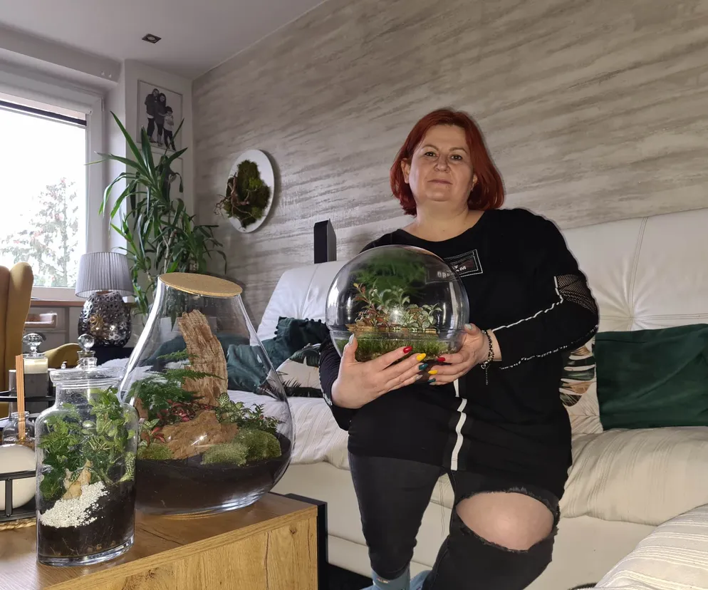 Agata Kwartnik (48 l.) z Rzeszowa zaczęła robić takie małe szklarnie z roślinami, zanim zaczęły być modne i ogólnodostępne. Rzeszowianka większość swojego życia współtworzyła firmę z mężem i zajmowała się sprzedażą typowo męskich gadżetów, jak klucze, wiertarki i młotki. W międzyczasie wychowywała dzieci i prowadziła dom. Kiedy pociechy były już na tyle samodzielne, że nie potrzebowały mamy na cały etat, pani Agata postanowiła spełniać marzenia i rozwijać w sobie pasję, która od zawsze w niej drzemała.