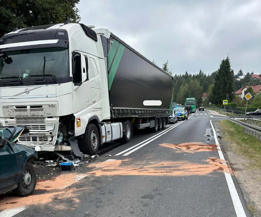 Czołowe zderzenie ciężarówki ze Skodą pod Strzyżowem. Kierowca w szpitalu