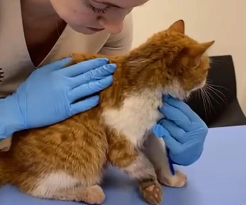 Kot trafił do Fundacji Ada w Przemyślu w niedzielę. Przywiózł go mężczyzna, który dostrzegł konające zwierzę w rowie w miejscowości Łuczyce w powiecie przemyskim. Futrzak był nie tylko cały we krwi, ale i z widocznymi poważnymi obrażeniami. Przede wszystkim oderwana końcówka ogona i złamana przednia, prawa łapa.
