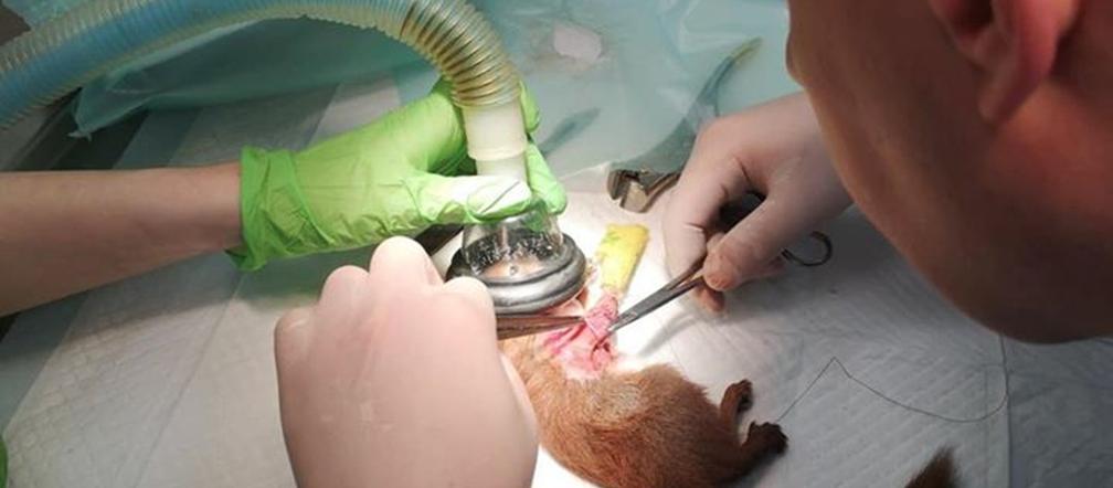 - Pacjent wersja mikro. Wiewiórka i złamana łapka to wyzwanie. Średnica kości 2 mm, robota dla zegarmistrza. Klucz do sukcesu ? Przeszkolony personel i możliwości zastosowania zaawansowanego znieczulenia wziewnego z monitoringiem. Dalsze leczenie i rehabilitacja pod czułym okiem lekarza wyspecjalizowanego w leczeniu zwierząt dzikich i nieudomowionych- opisali weterynarze