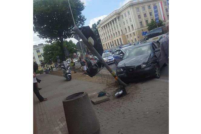 Jak ustalili wstępnie policjanci, osobowy seat uderzył w citroena, a następnie w słup sygnalizacji świetlnej. Sygnalizator uległ uszkodzeniu i spadł na dwoje pieszych - kobietę i mężczyznę.