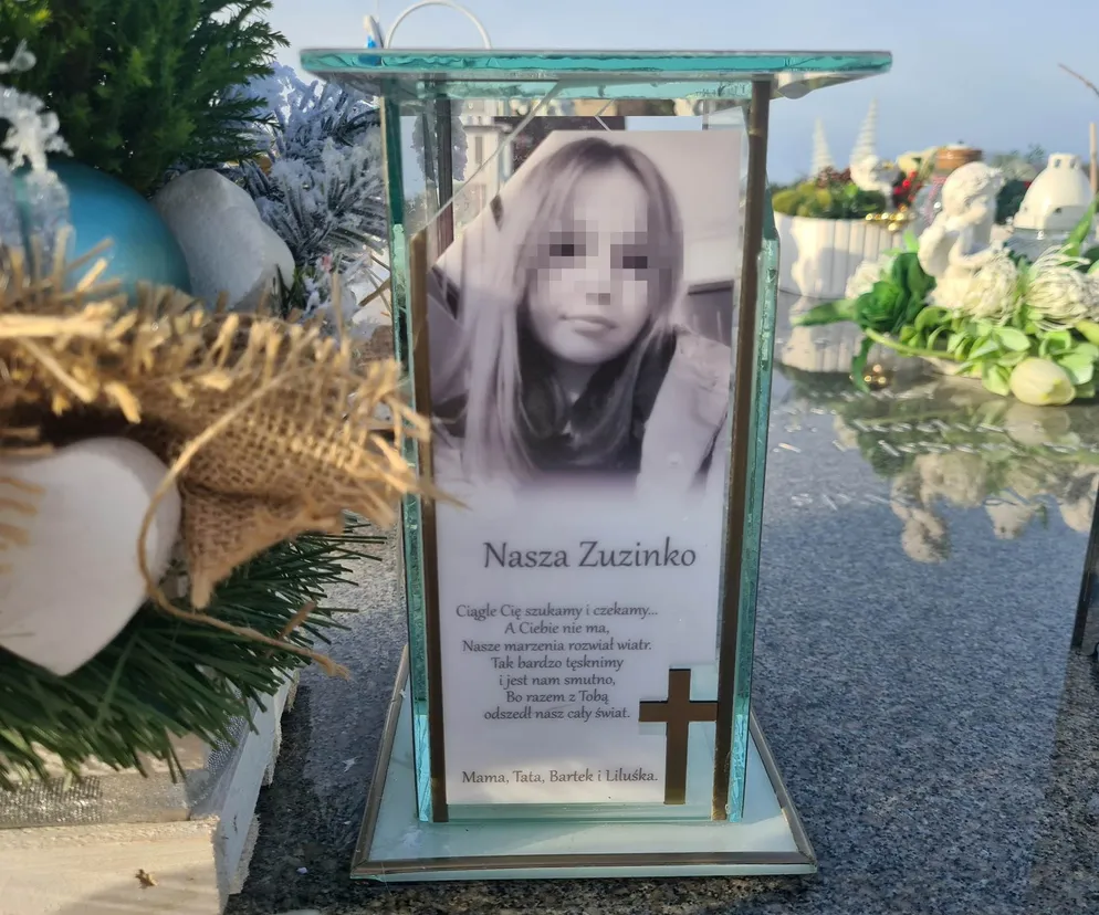 Rok po tej rozdzierającej serce tragedii grób Zuzi przyprawia o łzy w oczach. Na mogile stoi cały tabun aniołków oraz figurek, które wspominają zmarłą dziewczynkę. Oprócz zniczy i stroików dla dziecka obok nagrobka najbliżsi postawili skrzynkę z podpisem "Poczta do nieba". Płytę nagrobną zdobi chwytający za serce napis: "Kochasz mnie? Tak. A będziesz kochać? Do końca świata i jeden dzień dłużej... Nie idę spać, ale dobranoc". Na nagrobku umieszczono kilka zdjęć dziewczynki oraz małe latarnie. Wśród nagrobnych ozdób stoi szklane serduszko z zimowym motywem. Na nim widzimy dwie osoby z podpisami MAMA, ZUZIA. Postać Zuzi ma skrzydła jak anioł, a z ust postaci matki odczytujemy chmurkę z podpisem "BEZ CIEBIE ŚWIĘTA TO NIE TO SAMO".