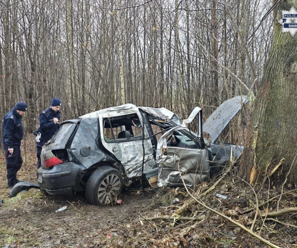 Policja w Rybniku pod nadzorem tamtejszej prokuratury wyjaśnia szczegółowe przyczyny i okoliczności śmiertelnego wypadku na ul. Czecha. Do zdarzenia doszło w czwartek, 11 grudnia, ok. godz. 11.30 - o 11.40 o wszystkim zostały poinformowane służby ratownicze. Według wstępnych informacji policji kierujący volkswagenem golfem 26-latek jechał w kierunku Rybnika, gdy z nieznanych na razie przyczyn zjechał na przeciwległy pas ruchu, po czym rozbił się o drzewo.