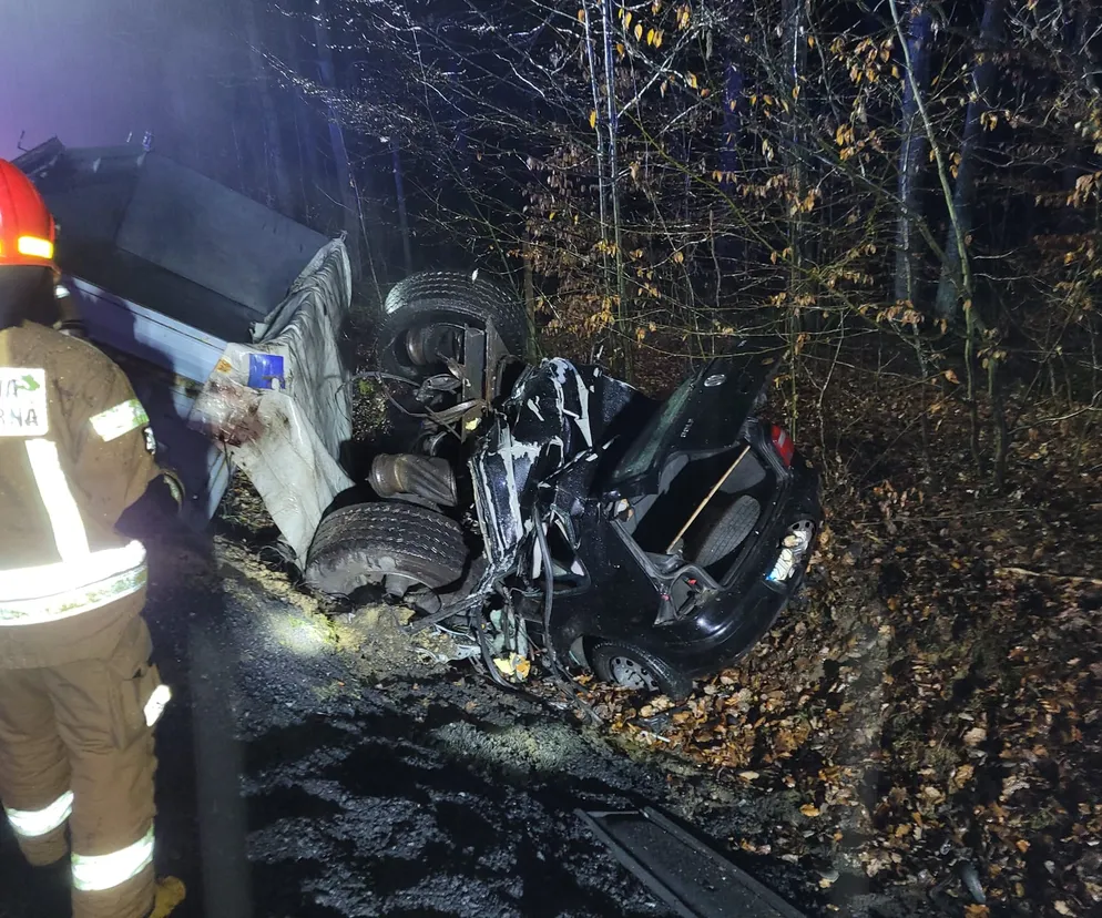 Śmiertelny wypadek pod Lublińcem. Ciężarówka z węglem wjechała w samochód osobowy